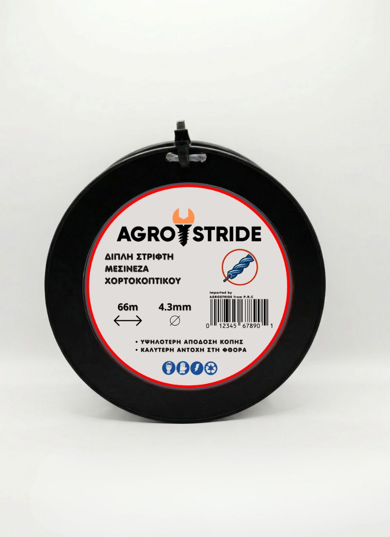 Home · Shop · Mηχανήματα & Αγροτικά εργαλεία · Αναλώσιμα · Mηχανήματα & Αγροτικά εργαλεία · Διπλή Μεσινέζα Agrostride 4.3mm – Στριφτή, Τετράγωνη, Ενισχυμένη για Χορτοκοπτικά 66m